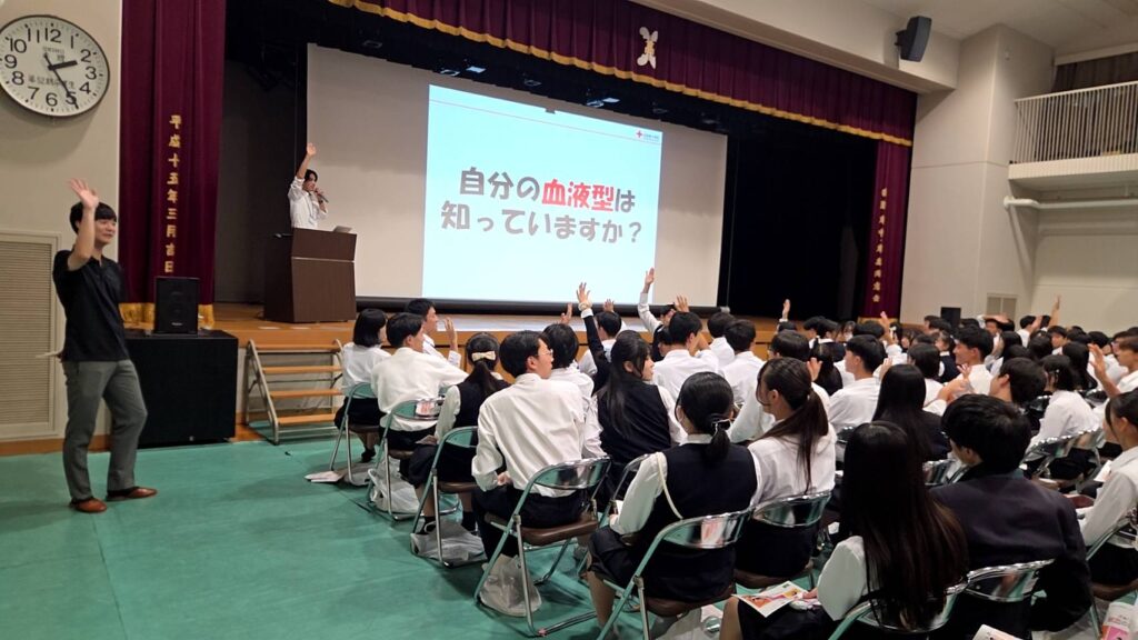 講演中、生徒の皆さんは非常に真剣な眼差しで話を聞いていました。献血が誰かの命を救う直接的な行動であることに、深く感銘を受けている様子が伝わってきました。
