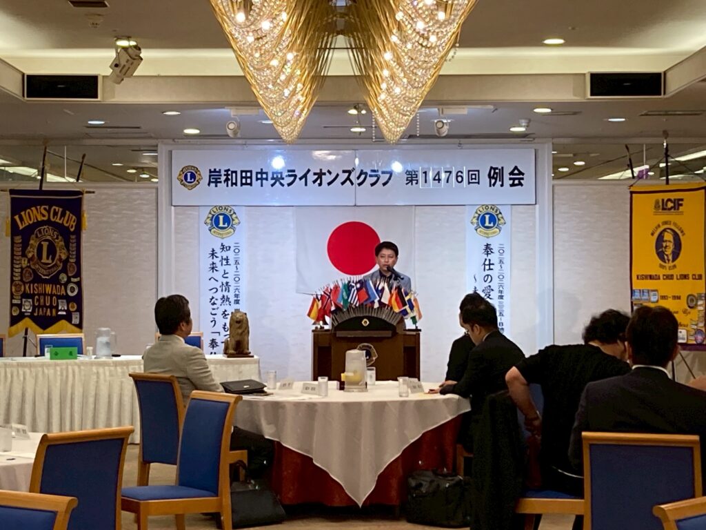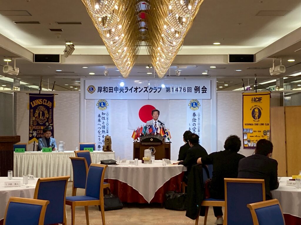 2025年10月2日、第1476回例会が岸和田グランドホールにて開催されました 。例会日がだんじり祭り期間と重なったため、ご出席されたライオンは12名と少人数でしたが、その分、濃密な報告と活発な交流が行われました 。