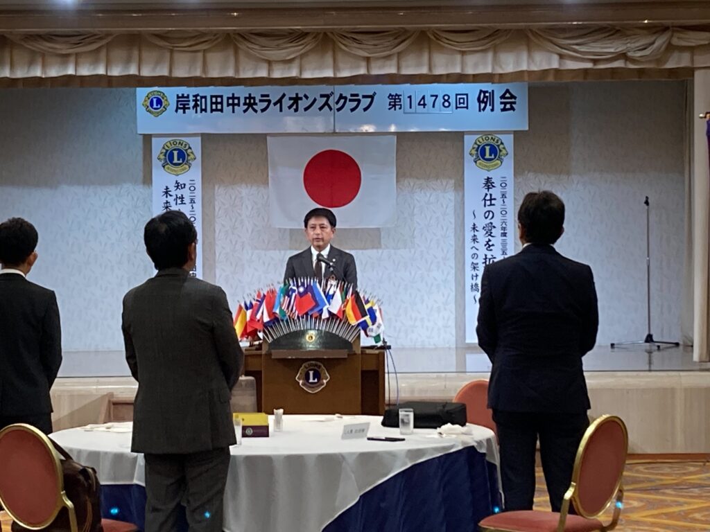 「岸和田と言えばライオンズ!」 地域に根差した奉仕活動を展開する岸和田中央ライオンズクラブは、11月6日(木)に岸和田グランドホールにて、第1478回例会を開催しました